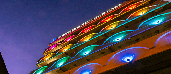 Aqualux developed a full lighting plan, control system schematic and manufactured our AQL-985 with Wireless DMX to bring this carpark facade to life. Find out more.