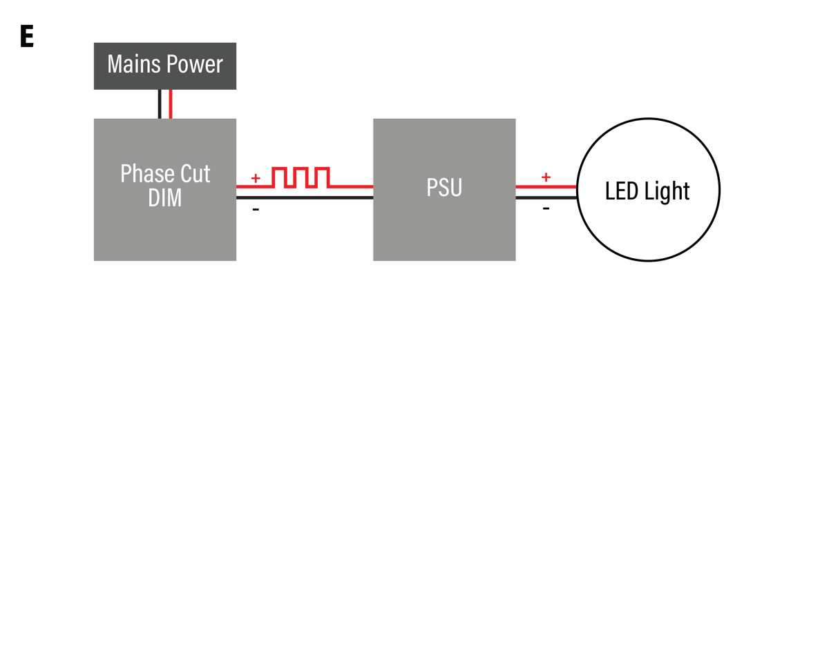 The control and dimming of lighting products are not as straightforward as it once was with halogen or incandescent lighting. There are multiple options and methods for dimming and control LED lights. Once manufactured, dimming compatibility cannot be changed without returning the product to our factory for modification. Refer to the table at the end of this document for more information on dimming control systems. While Phase-cut/TRIAC dimming systems can still work with some LED products, there are also other legacy systems such as 0-10V (developed for fluorescent lighting) and more modern digital lighting control systems such as DALI and DMX that are in many ways more suitable for LED lighting control.