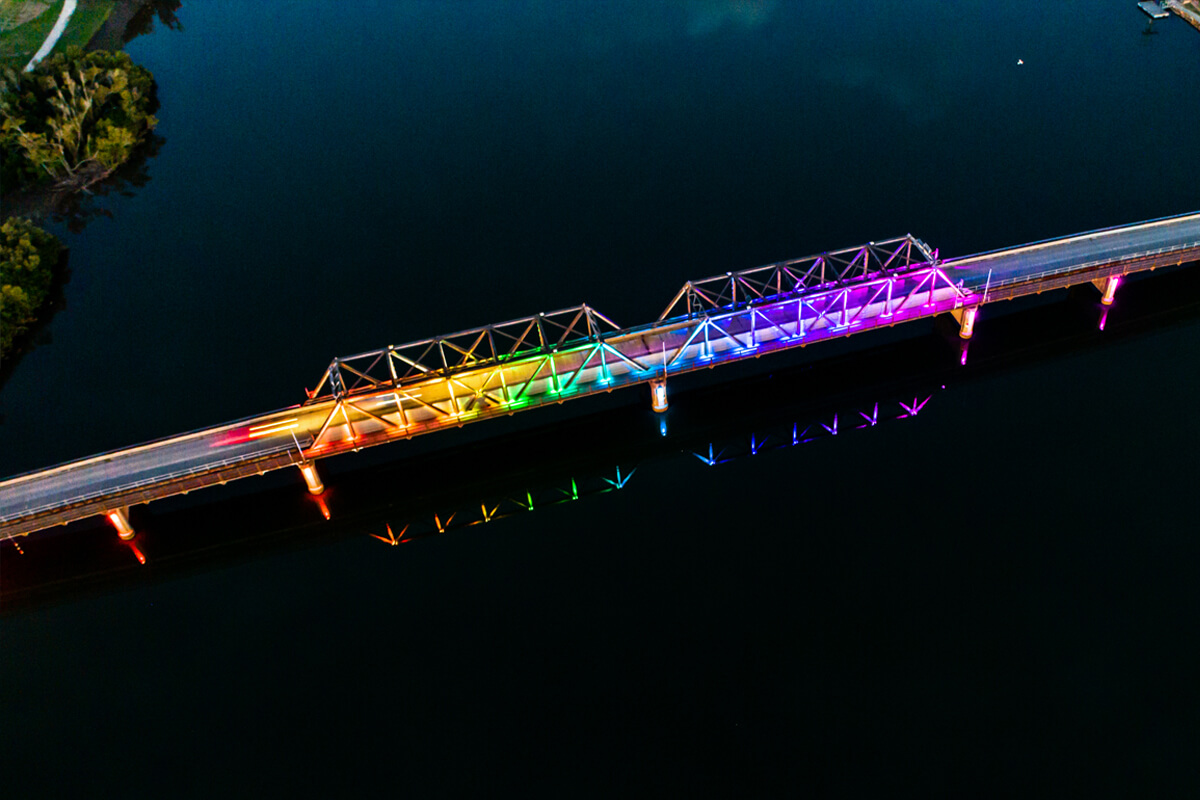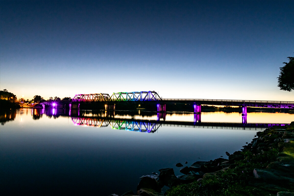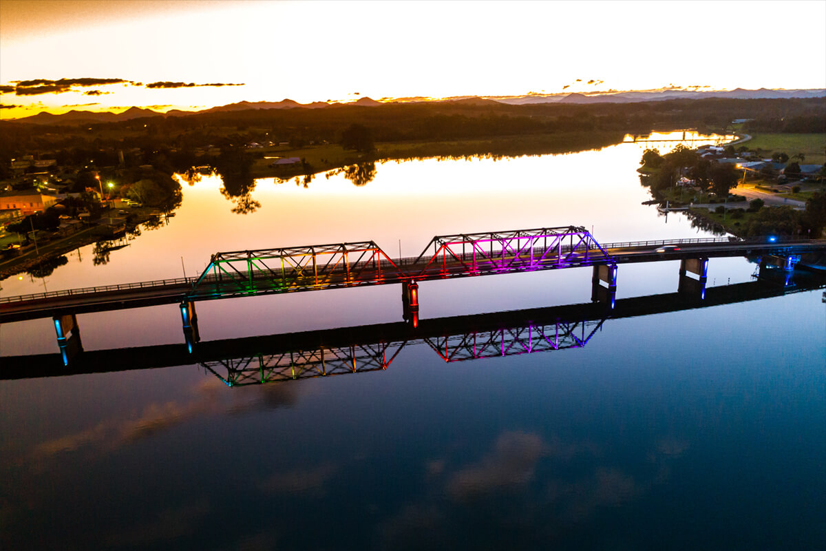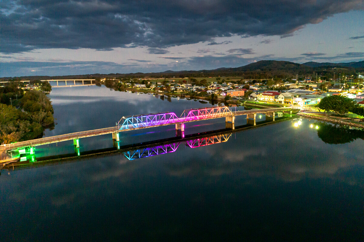 Aqualux Lighting was contacted to advise and supply lighting for the Macksville Bridge and foreshore with RGBW luminaires and RGBW Neon Flex by a consulting firm commissioned by the local council. With the purpose to accent the bridge features and create a colourful mood.