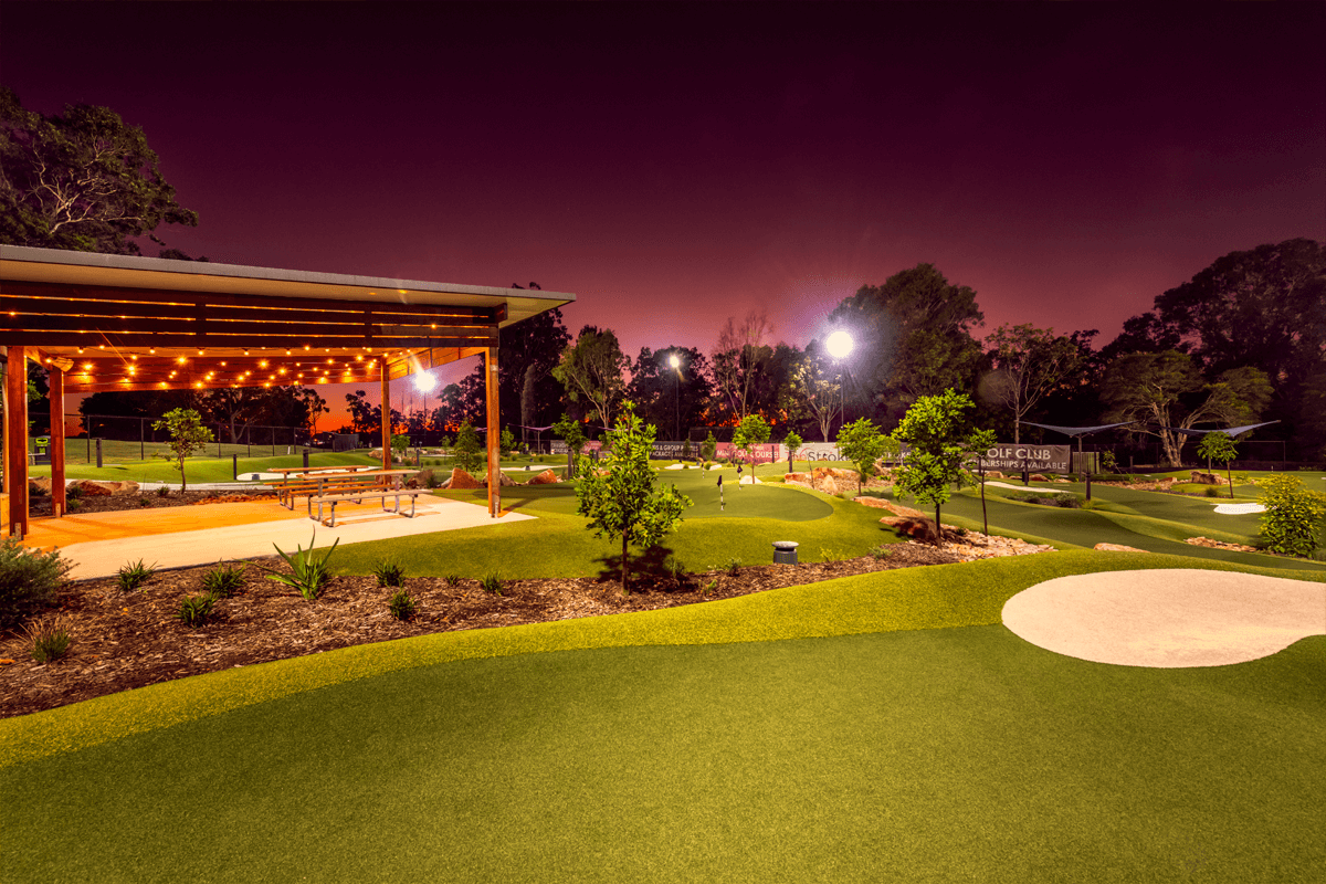 Oxley Putt Putt Brisbane - Were lucky enough to engage the golf legend David T. Pelz an American golf coach known for his published writing on the art of the short game, particularly putting, then decided to bring the ultimate course in mini golf to Brisbane. Dave has been a contributor to the design and layout of our course making TopStroke the newest and best course in Brisbane for mini golf. Putt Putt being an all-day and night game, attention to lighting was needed to enhance the geography of the course and its pathways.