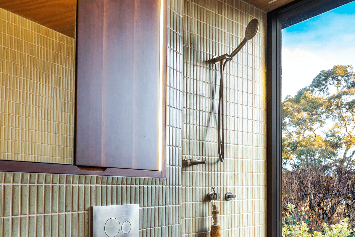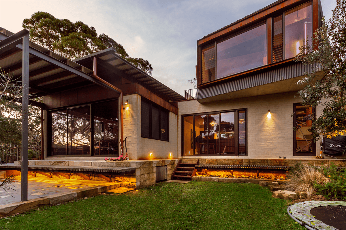 Living next to bushland, Charlotte wanted to continue the feel through the home, having full-width and height glass doors and windows facing the backyard and natural landscape, the outdoor lighting was visible from the inside.