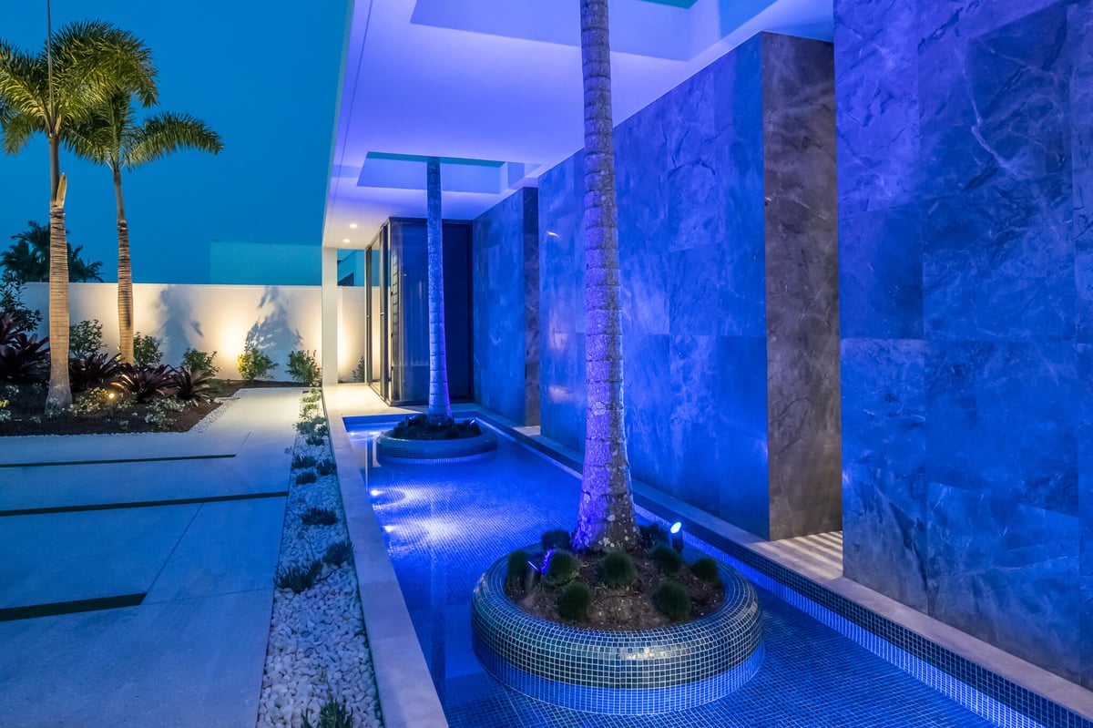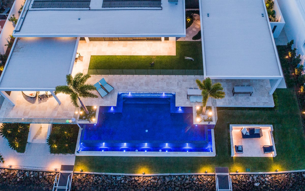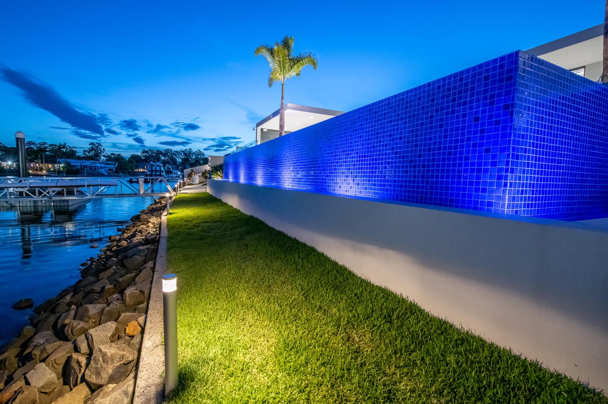 Sanctuary Cove - A modern riverside house elegantly illuminated with Aqualux Lighting.