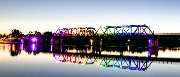 Contacted to advise and supply RGBW lighting for the 90-year-old Macksville Bridge overlooking the Nambucca River. The concept was to highlight the pillars of the bridge with changing colours, while maintaining the bridge's heritage.