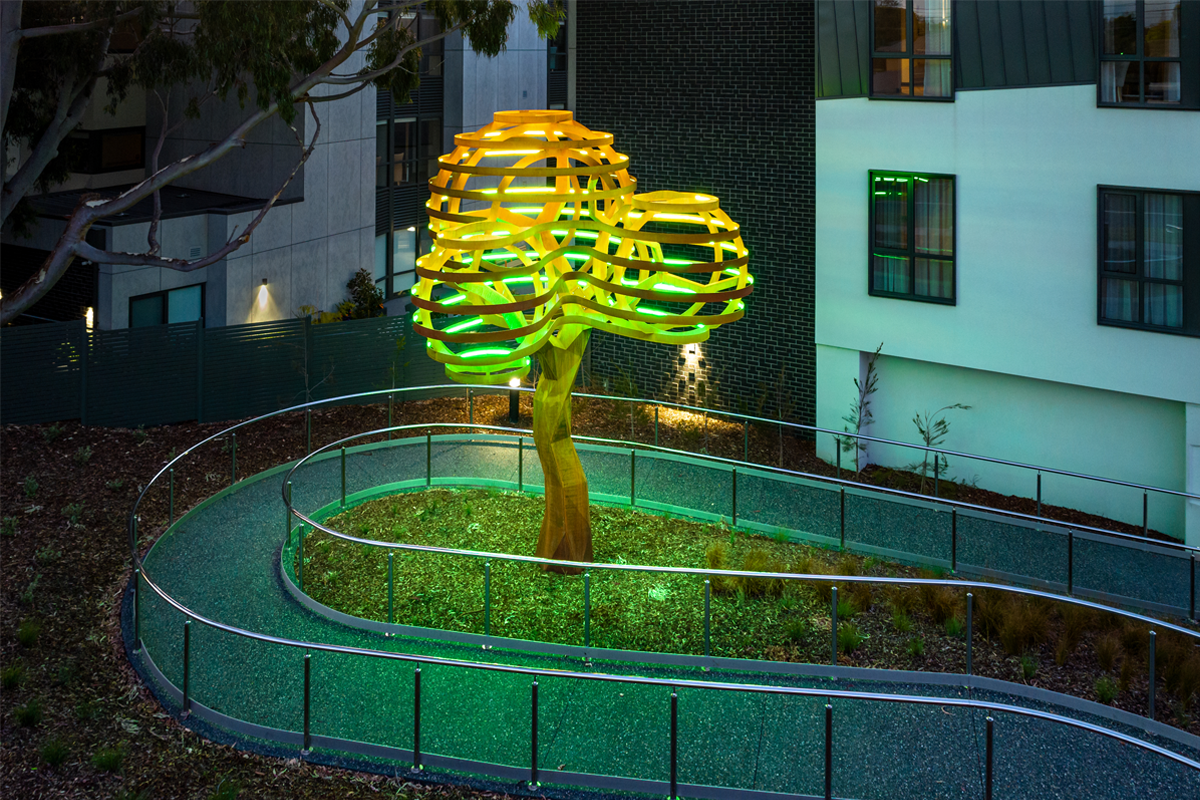 When our long-term customer, Lighting Options, approached us to work with metal artist Matt Hill on a custom-made sculpture for Autumn Aged Care, it was an exciting opportunity to collaborate on a unique creative vision. The brief was to create an outdoor art piece that celebrates Autumn, using a bespoke outdoor lighting design to transform an installation from looking incredible during the day to looking spectacular by night.
