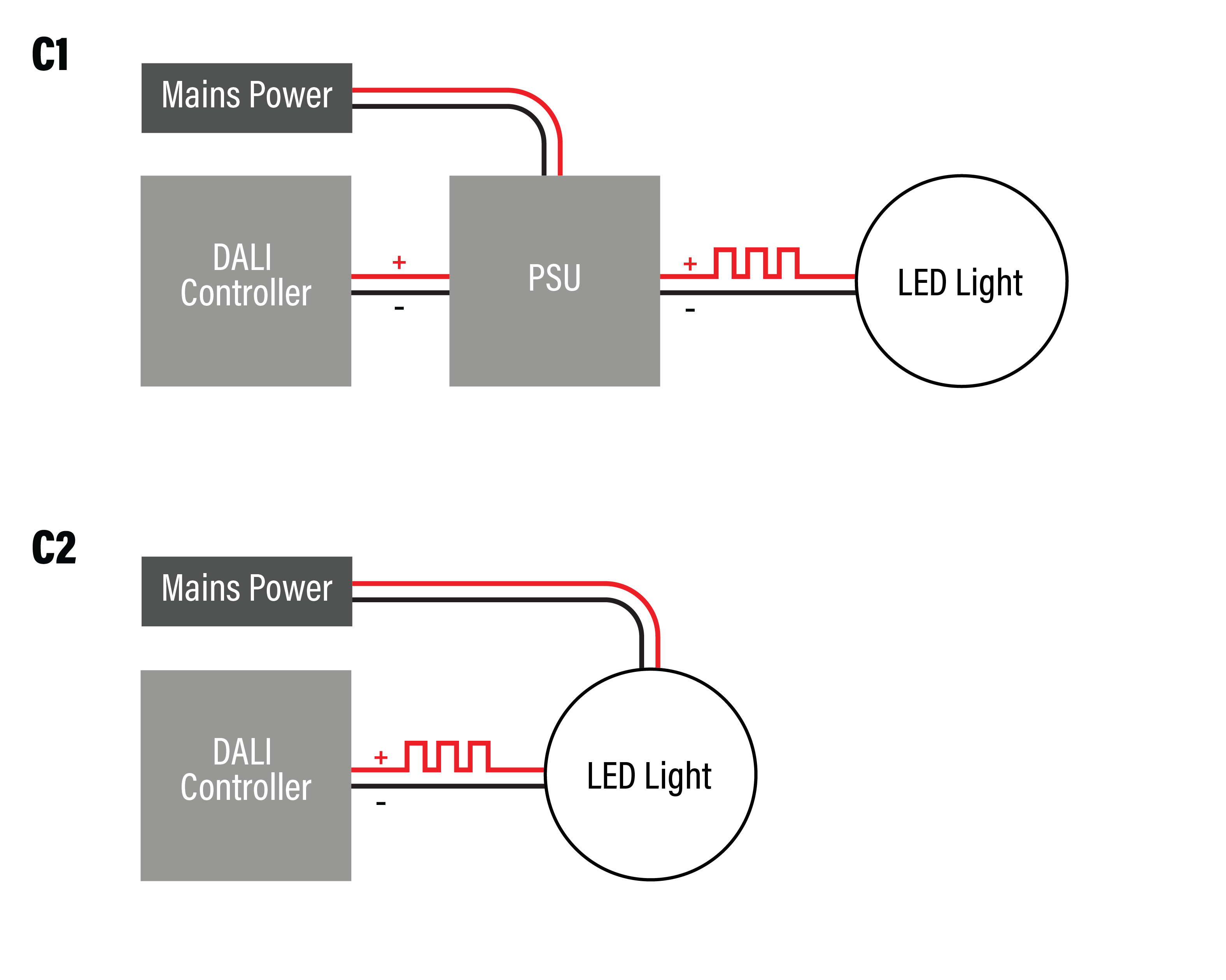 24V DC Only (Not dimmable on AC). Utilises the Meanwell DAP-04 (DALI Interface). Can use standalone DALI dimmers or with DALI application controllers. |